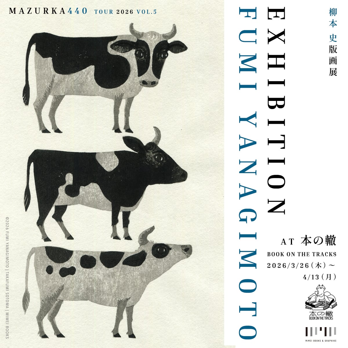 実店舗では、版画家・柳本 史と想像家・外間隆史によるコラボレーション絵本『マズルカ440』(未明編集室)の刊行を記念した版画展を開催します。