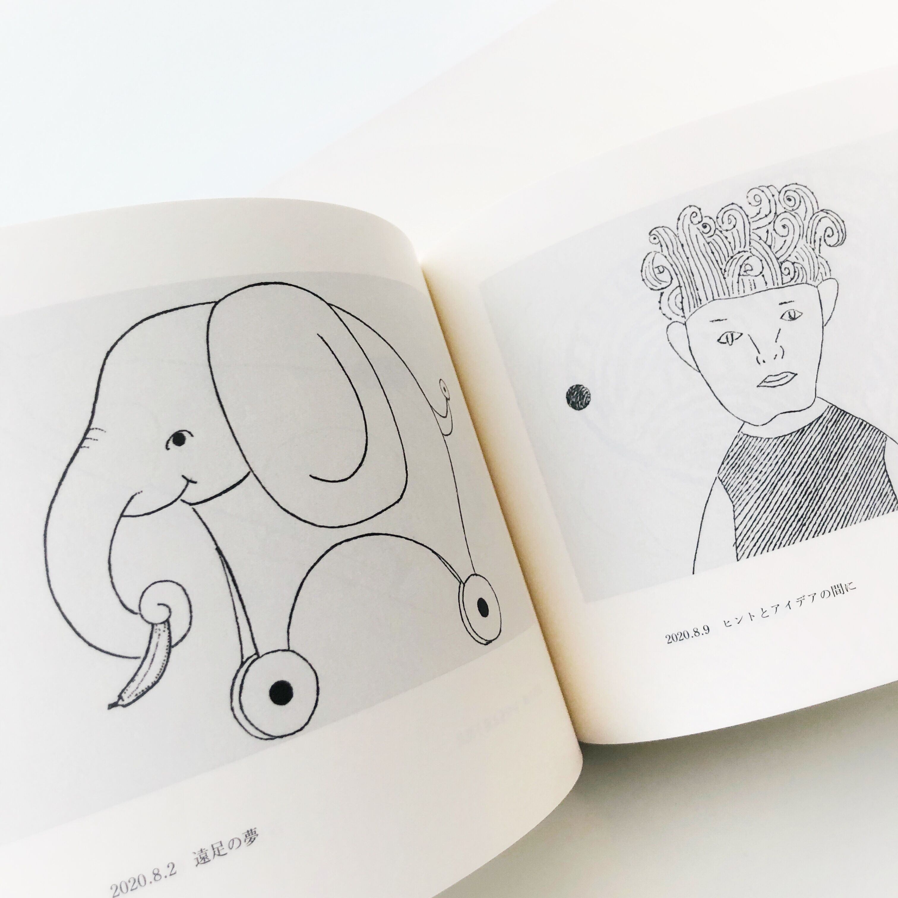 ミナペルホネンの創業デザイナーである皆川明の初めての画集。2016年1月から2017年2月まで日本経済新聞に連載された川上弘美の長篇小説「森へ行きましょう」に掲載されたカラー挿絵全点と、朝日新聞の「日曜に想う」欄のために描かれたモノクロ挿画のうち、2021年12月までの全点を合わせた630点を2巻に分けて収録。横開きのページに1点の絵というシンプルな構成で、表と裏にあらたに描いたオリジナルの絵をあしらった函入りの仕様となっています。アートディレクションは、「つづく展」のグラフィック・デザインを担当した葛西薫。また、皆川明が絵を描く際の心理、画材、本業であるファッションデザインとの関係について、作家の松家仁之がインタビューを敢行し、16ページにも渡って興味深い内容がまとめられています。