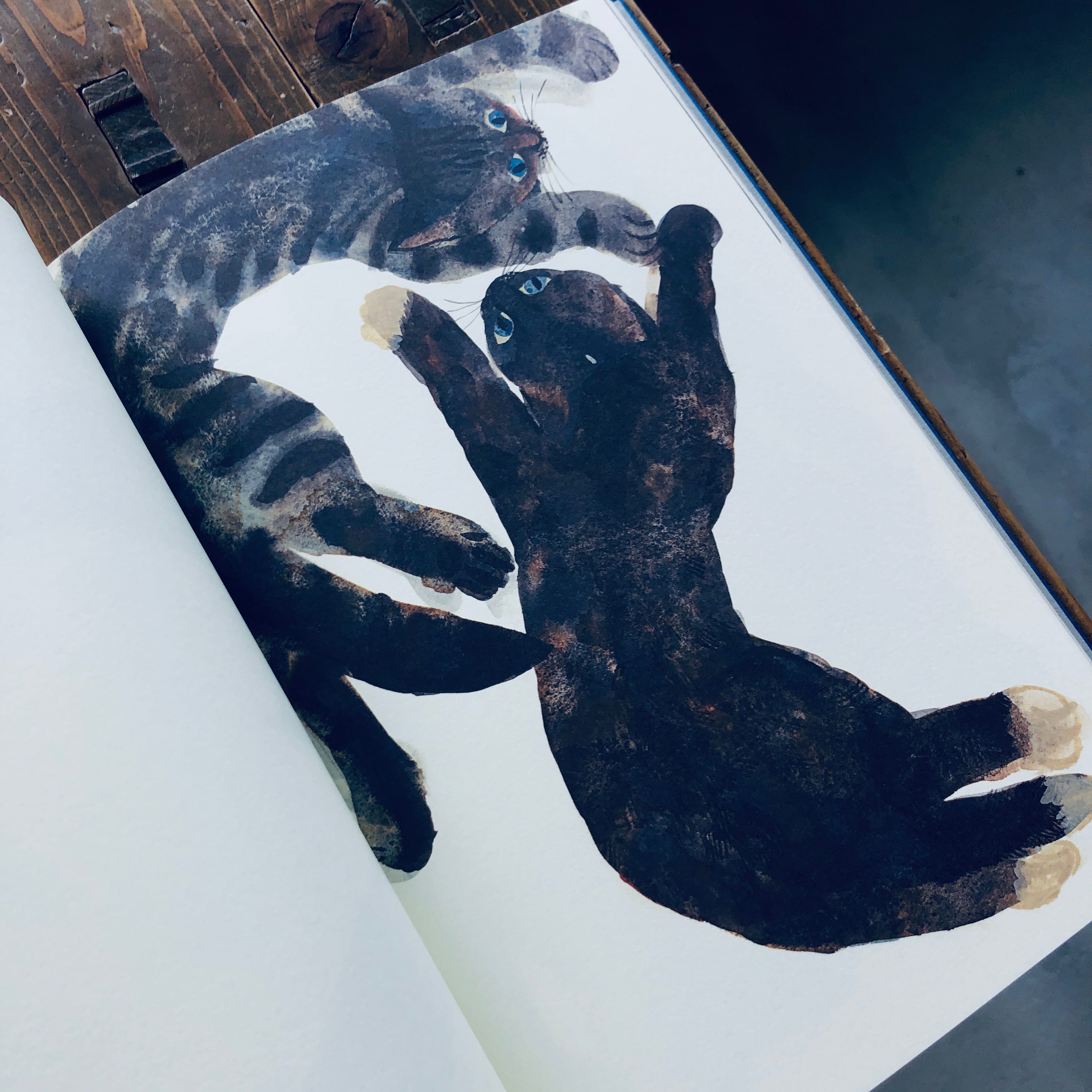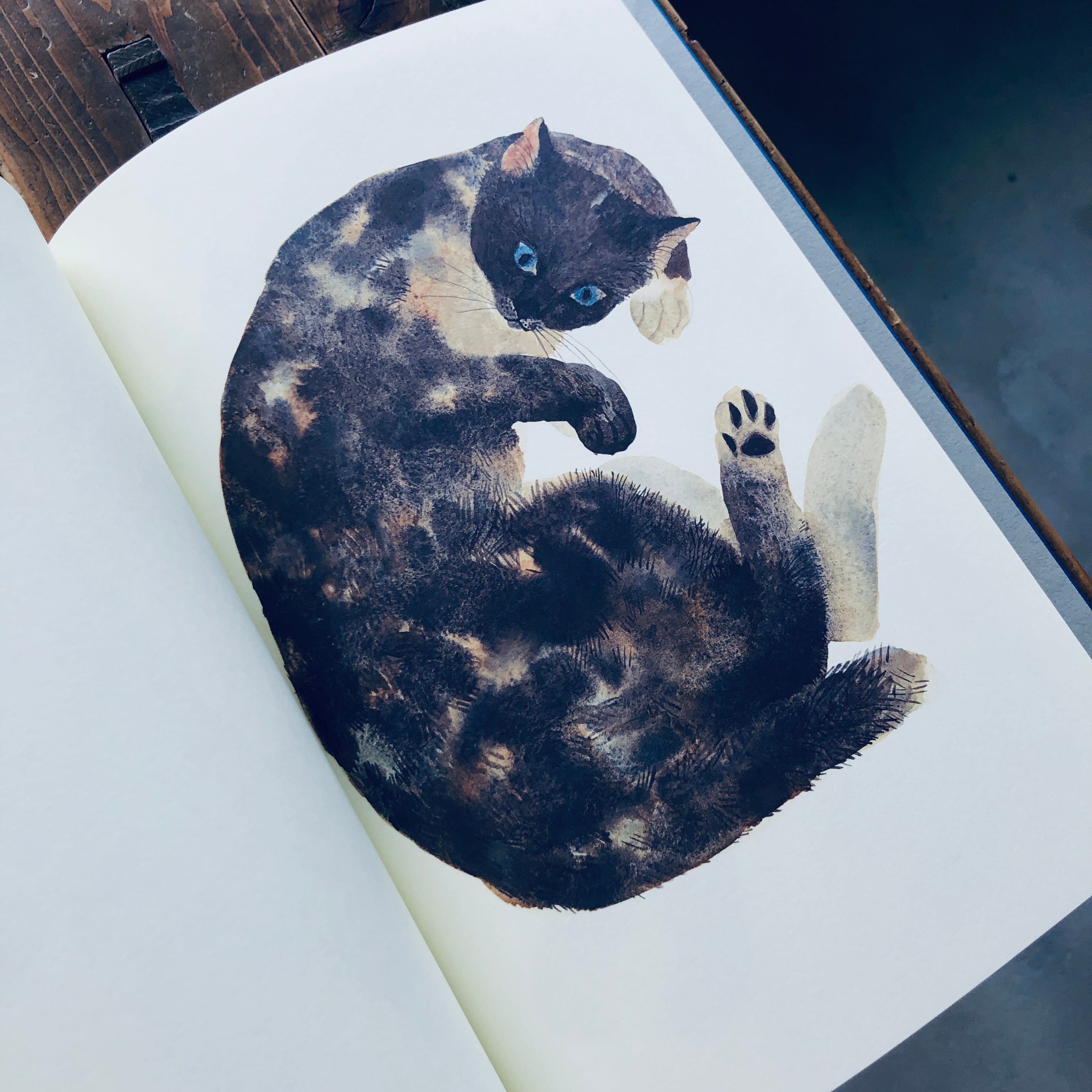 チェコを拠点として活動を続ける画家、出久根 育が共に暮らす猫、サビンカとマクルカ。本書は展覧会のために描き下ろされたドローイングを纏めたもので、向き合い、見つめ合い、じゃれ合い、追いかけて丸まり、伸びて、対峙する──。そんな二匹の愛猫の生き生きとした姿を伸びやかな筆で描いた作品集。画家の表現力と絵の質感を損なわない紙に、函を奢った特別な装丁は、海外の古書店に並んでいるような風合いが感じられる。ページをめくるのが愛おしくなる一冊です。